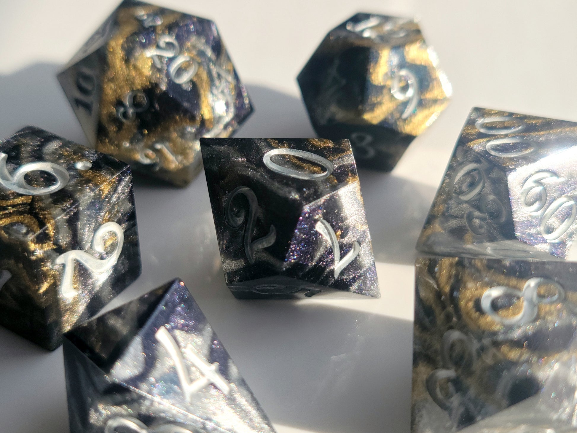 All dice sold by Forbidden Fae are handmade by us. There may be minor differences between different sets of the same design.